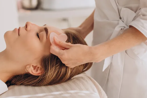 Le soin du visage Gua Sha, issu de la médecine traditionnelle chinoise, est spécialement conçu pour affiner le visage tout en favorisant un bien-être général. Le terme « Gua Sha » signifie littéralement « gratter » (Gua) et « fièvre » ou « rougeur » (Sha) en chinois, et désigne une méthode consistant à gratter doucement la peau avec un outil spécifique pour stimuler la circulation sanguine.